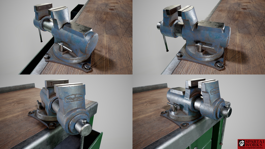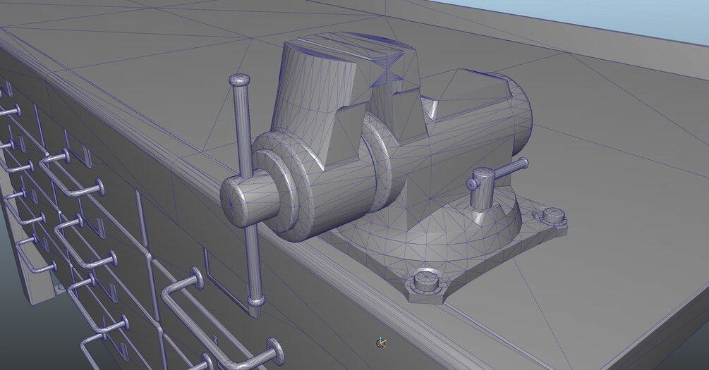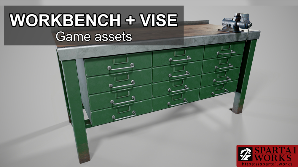 Game assets of workshop workbench and vise, that can it into any scene, where any manual work is expected.